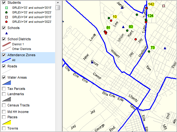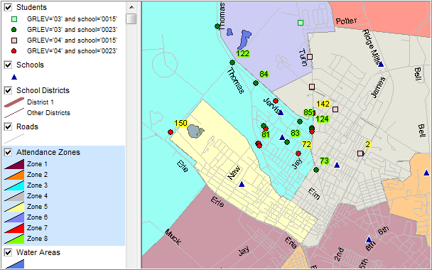 | • | View schools and other layers in context of attendance zones |